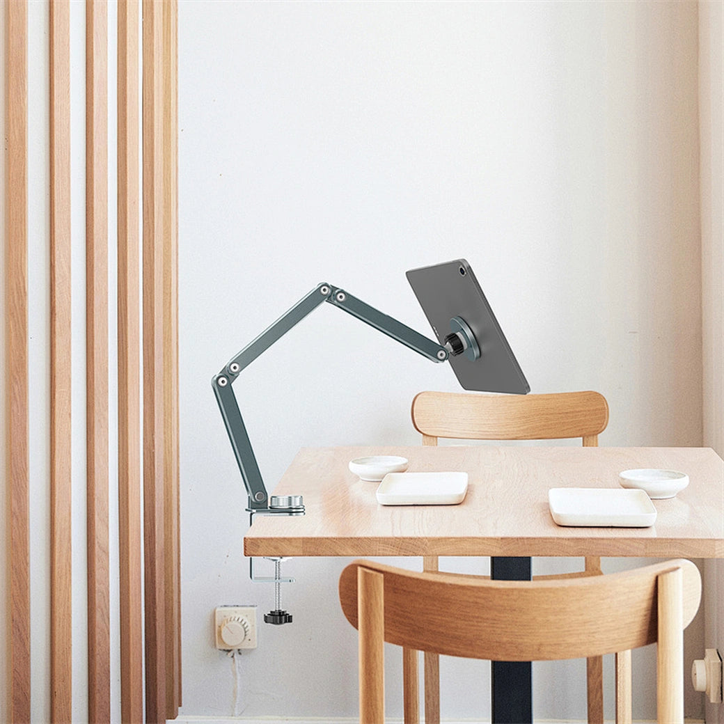 The WiWU 2-in-1 Tablet Stand is crafted from premium aluminum alloy for a sleek, durable design that offers both clip-on and desktop support. Perfectly compatible with iPads and other tablets, it features adjustable angles and a secure grip clip for mounting on desks, beds, or workstations. Ideal for hands-free use during video calls, drawing, reading, or watching content, this stand combines portability, stability, and modern style in one versatile accessory.