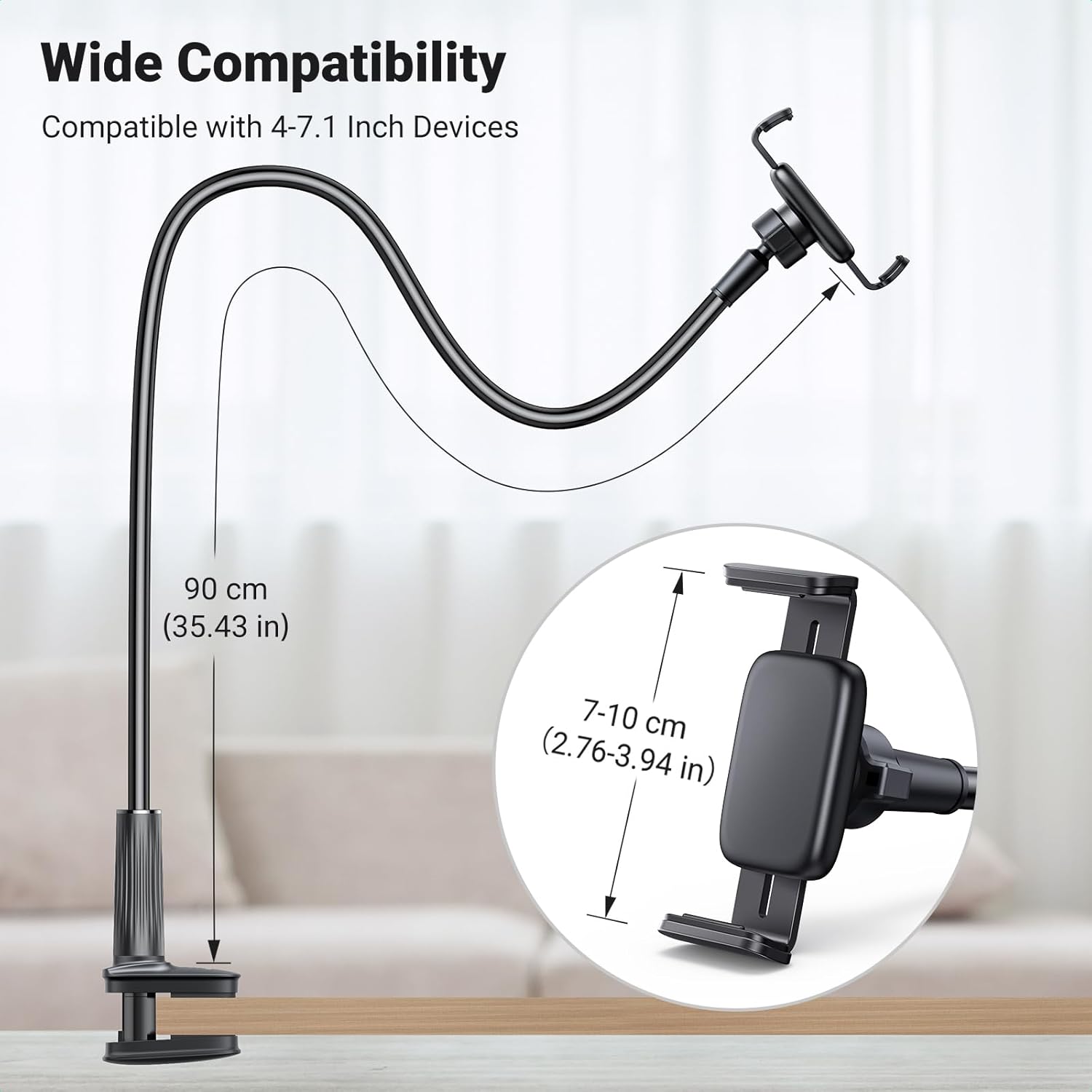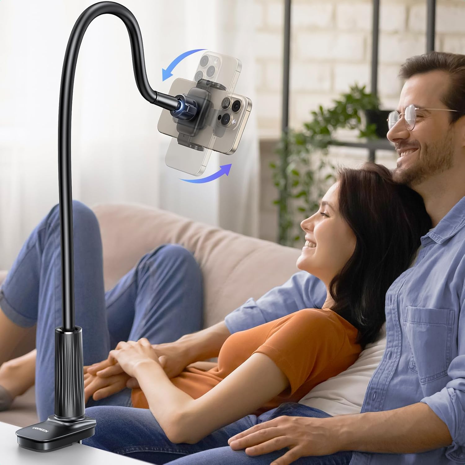 The UGREEN Gooseneck Phone Holder is a flexible and sturdy phone mount designed for hands-free viewing in bed, at a desk, or anywhere you need it. Featuring an upgraded 360° adjustable ball joint and a durable long arm, it offers precise positioning for the perfect angle. Its strong clamp ensures secure attachment to surfaces, while the silicone padding prevents scratches. Ideal for watching videos, video calls, or reading without holding your device. Compatible with most smartphones.